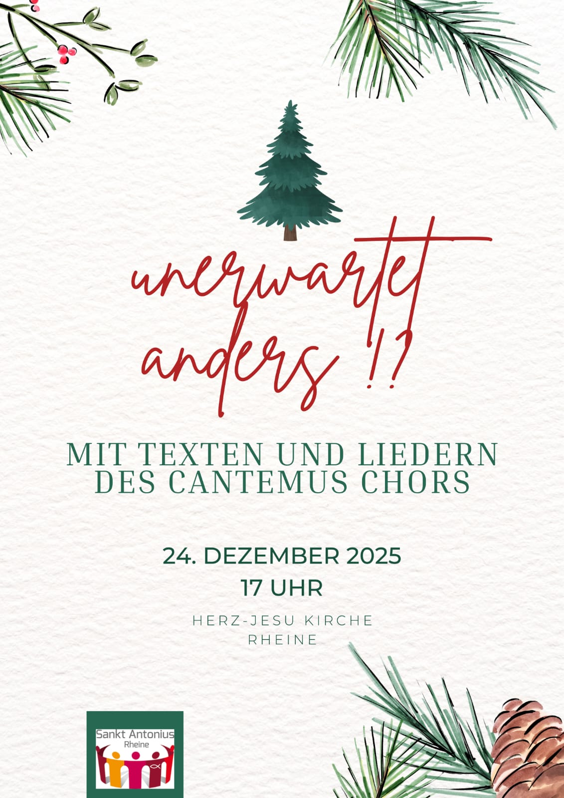 Am 24. Dezember um 17 Uhr feiern wir in der Herz-Jesu-Kirche einen besonderen Gottesdienst unter dem Motto „Unerwartet anders!?“